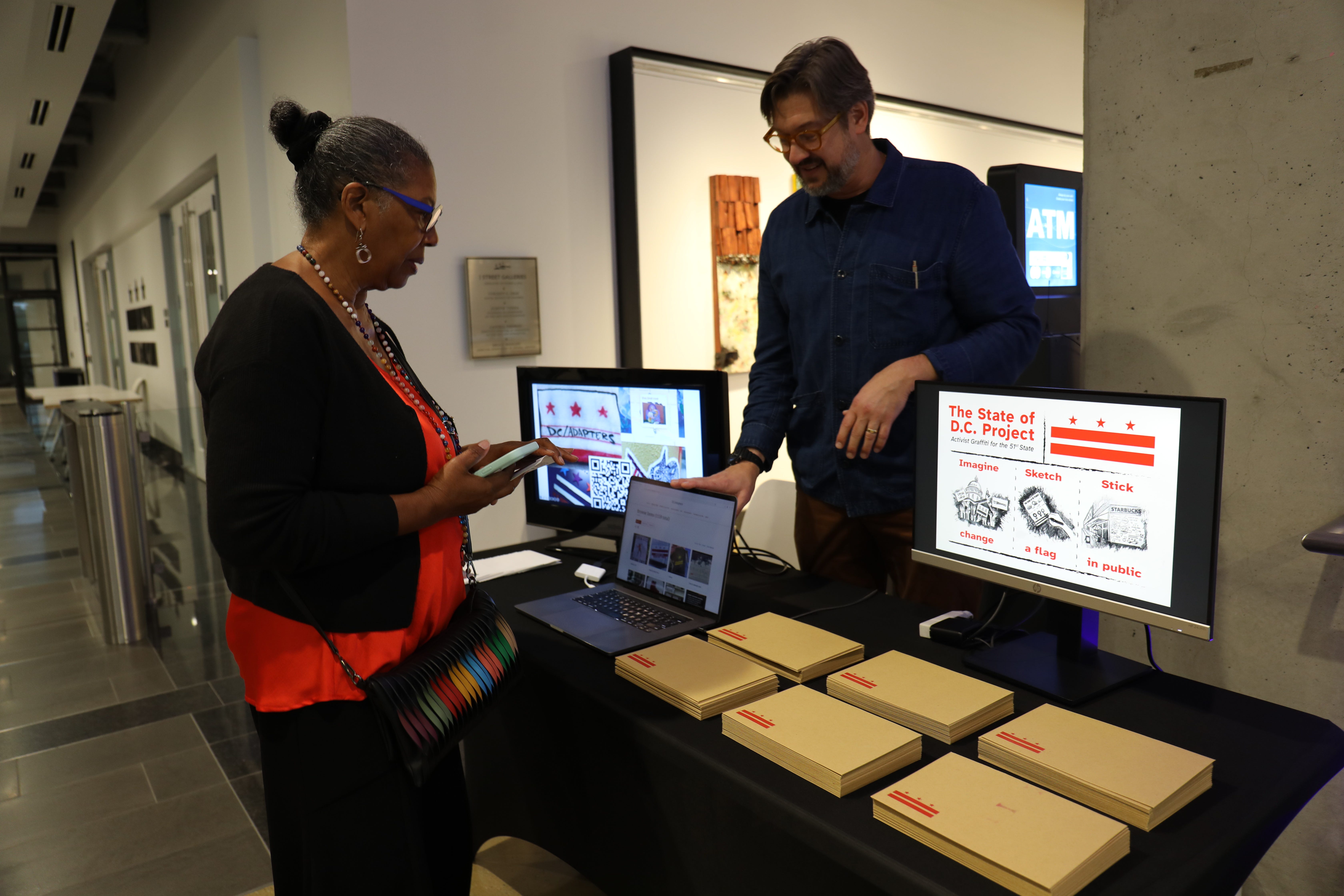 The thing that I’m most excited about right now is an ongoing evolution in my own practice. For years, DC/Adapters was a documentation project, but I’ve begun to wonder what else is possible. The first spin-off was a short film that encourages others to remix the flag, particularly in support of D.C. statehood. Next, I wanted to facilitate this invitation, to build interactive experiences in which I encourage, teach, and enable folks to adapt the flag. So, I started a workshop series in the summer of 2025. I call it the State of DC Project, and it’s a creative workshop in which I provide folks with “activist graffiti kits” so that they can add their perspectives to civic discourse in D.C.